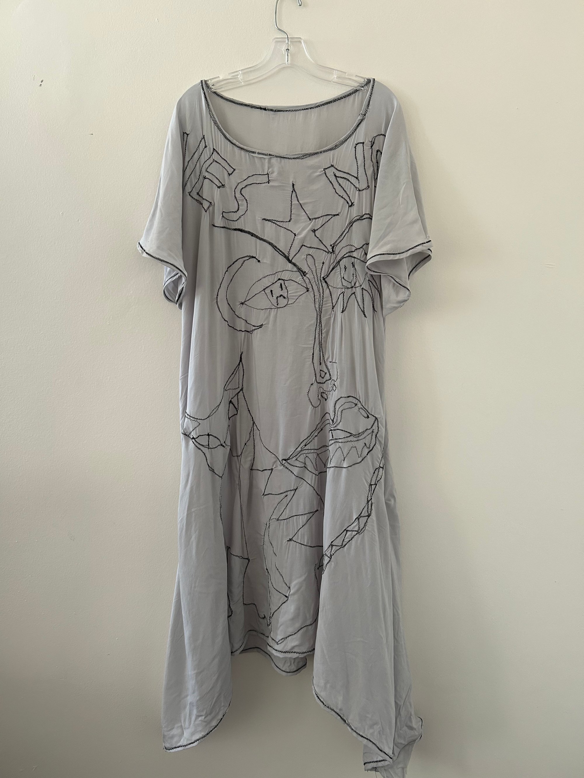 One off lightweight woven dress with side seam pockets and freehand machine embroidery details. Very oversized, one size fits most