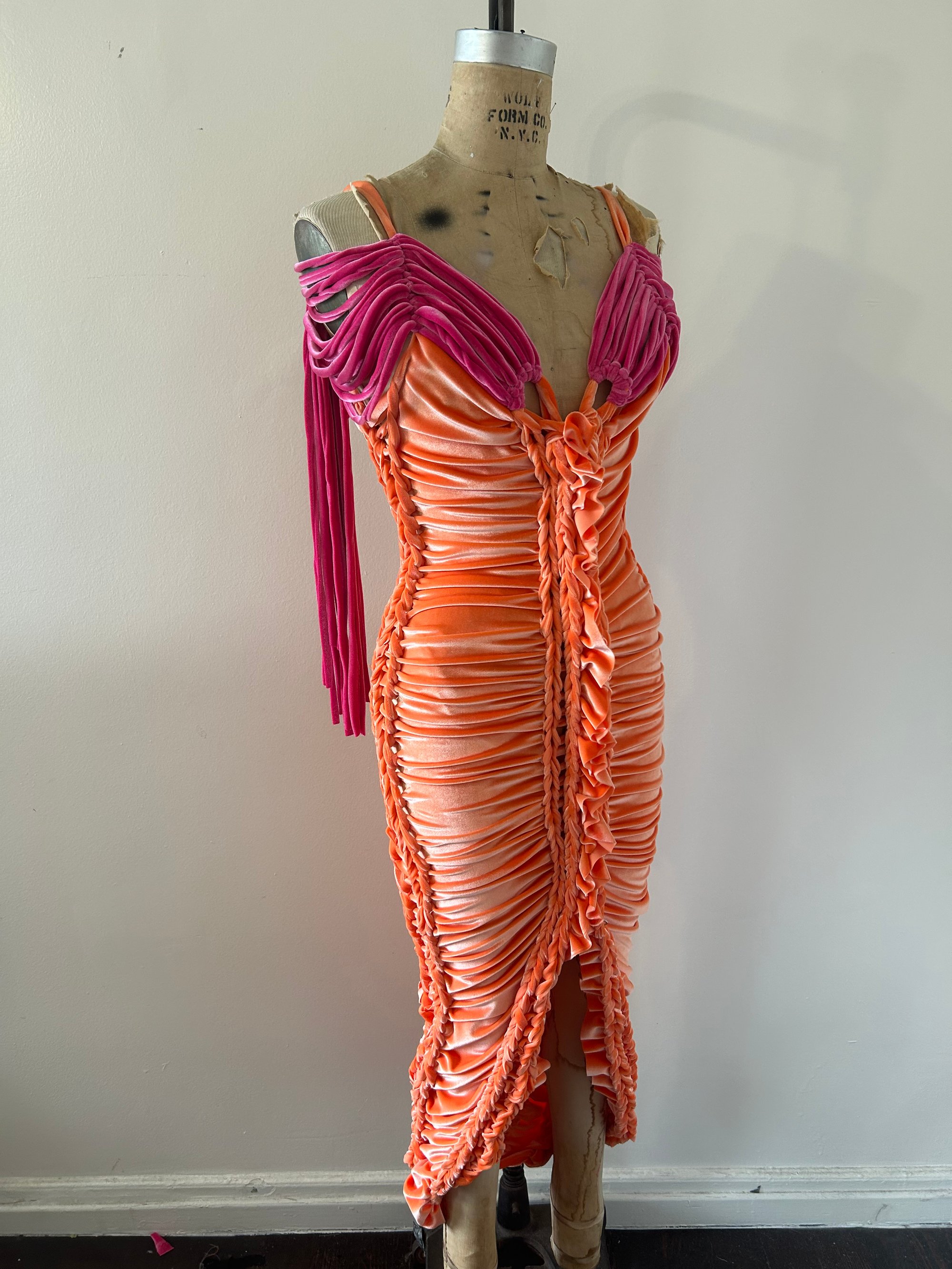 One off hand braided velvet Lycra dress. Very stretchy, size M